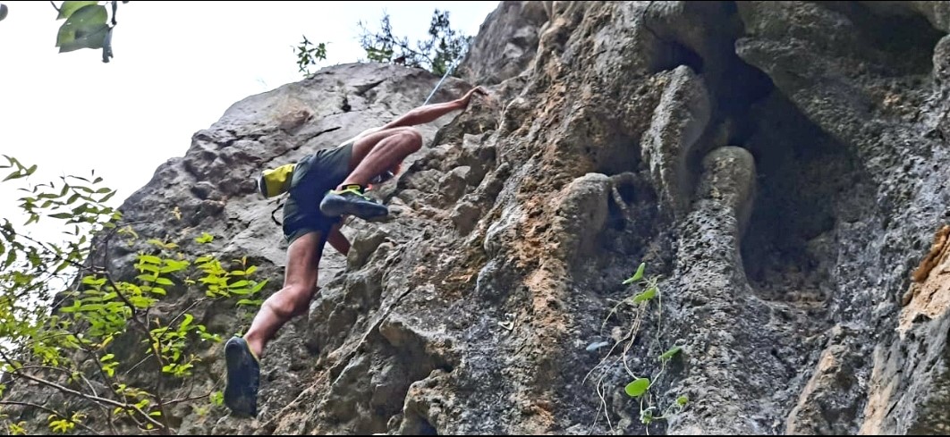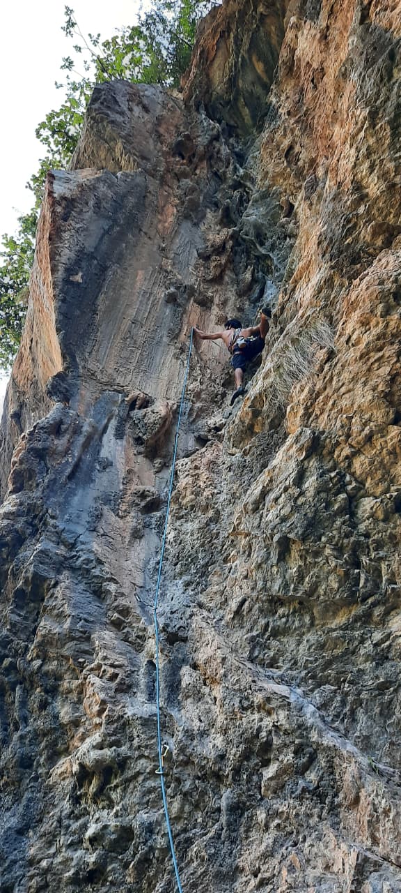 God Rock is an overhanging limestone crag dramatically concealed behind the Said Pur valley, with powerful, pumpy climbing and dark shade all day long. It’s one of the few places on Margalla that can be climbed in summer because of the crag´s location in the dense forest and also rain shelter.