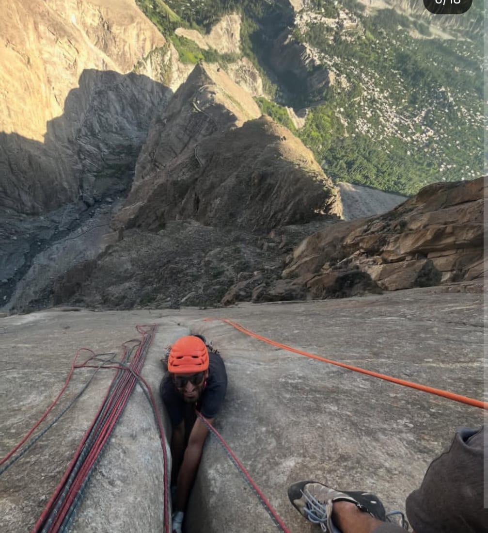 Hélias Millerioux is climbing the first ascent of the “Bitan Fissure” trad climbing route on Hoon Chhish, Karimabad, Hunza. Photo: Hélias Millerioux